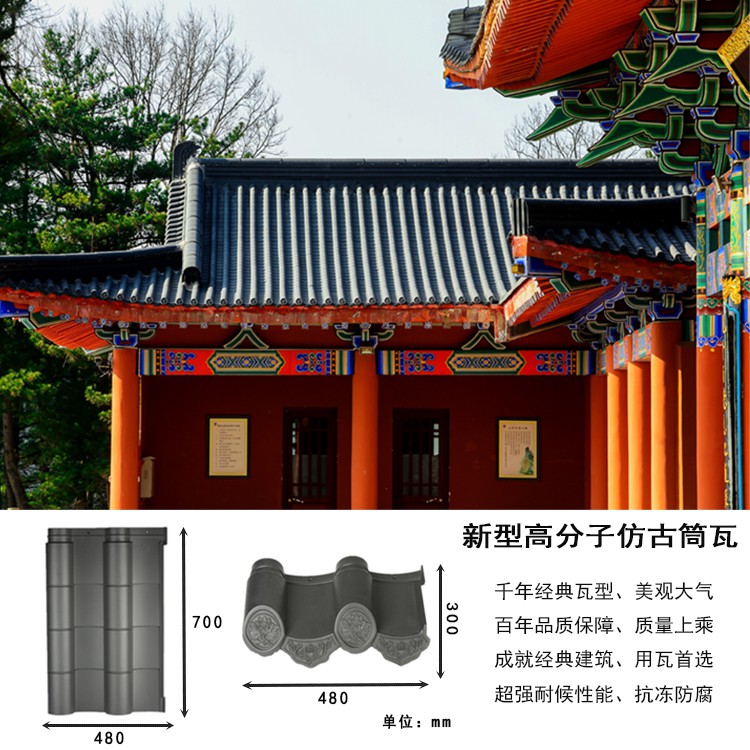 西安拓建合成分子瓦坚守品质初心,以优质合成分子材料为核心基材,科学搭配增强纤维、天然彩砂等优质辅料,经高温高压模压成型工艺精制而成,彻底摒弃传统瓦材烧制的诸多弊端,全程严苛把控原料配比与生产工序,从源头提升产品稳定性与耐用性。相较于传统陶瓦、琉璃瓦笨重、易碎、易漏水的行业痛点,西安拓建合成分子瓦尽显新型合成材料的优势,质地轻盈却强度出众,每平方重量仅为传统陶瓦的30%,大幅减轻屋面荷载,无需额外加固屋架,尤其适配古建修缮与旧屋改造场景,能有效保护建筑原有结构,灵活适配各类屋面需求。
